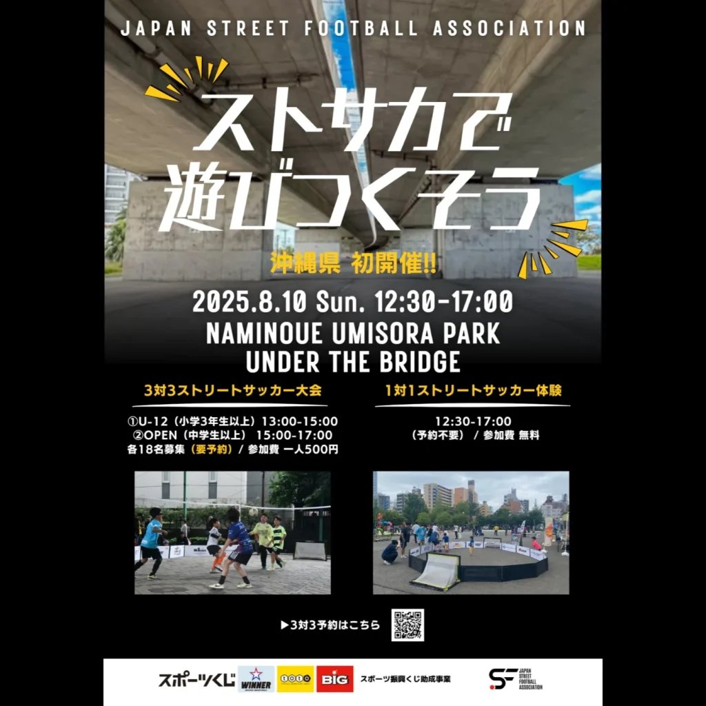 2025年8月10日(日)、波の上うみそら公園高架下で開催された日本ストリートサッカー協会主催の「ストサカで遊びつくそう」にて運営協力いたしました。